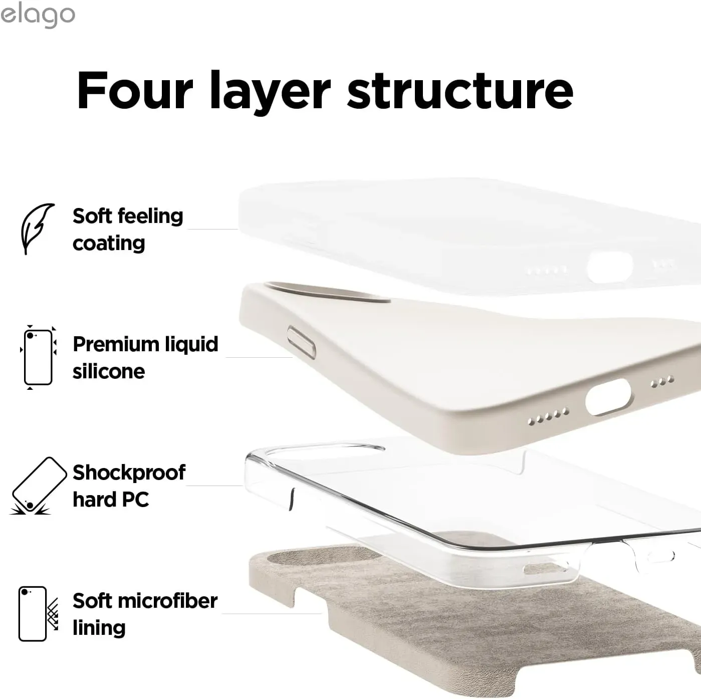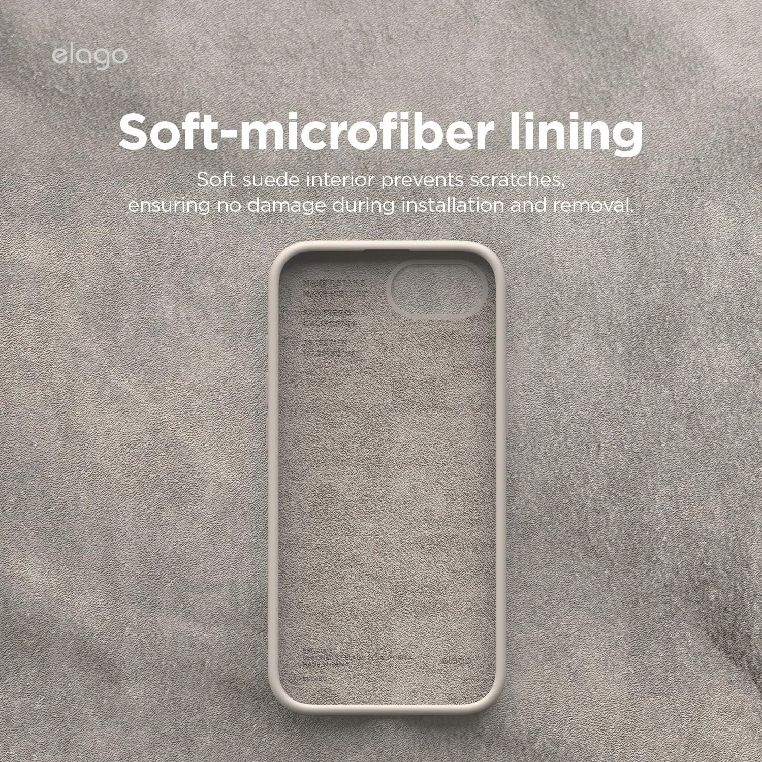 Estuche para iPhone 16e Elago Silicone en Stone; funda de silicona líquida de alta calidad, funda protectora de cuerpo completo, a prueba de golpes, forro de microfibra suave.